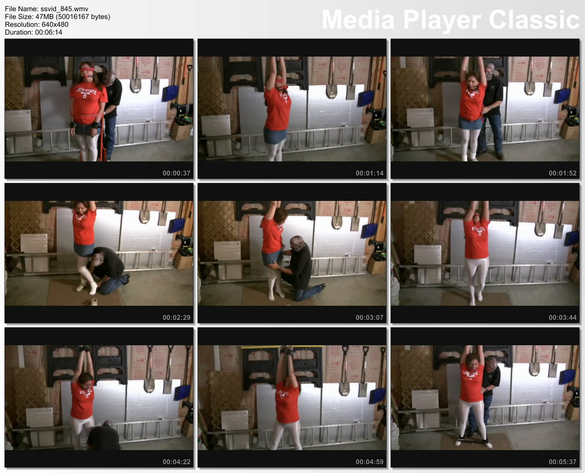Kira Dee, from www.HosedNHelpless.com is back and sharing her brand of tight clothing and tight bondage with us! This week she is a sports fan in distress! In her own words, "I thought it was just the typical Saturday college football game and party after. I suppose maybe I was cheering too loud and well we did win so why not. Seems someone was not too crazy about my team spirit and before I knew it I was tied up, gagged and blindfolded. What I did find out was the “fan” had his own idea of a “tailgate party”…. He sure had it planned out…the dolly he brought me in on down to the garage I finish up in. Let’s just say I end up in only a t-shirt and tights as the rest of my outfit is removed…and he seems to enjoy my predicament and not much I can do to stop it. Even with my ball-gag, I still end up hand-gagged and then a bandanna used to stop my attempts to get free and be kept quiet. Guessing maybe he was a Michigan fan but either way…not stopping me from the next game….and well tailgate party."